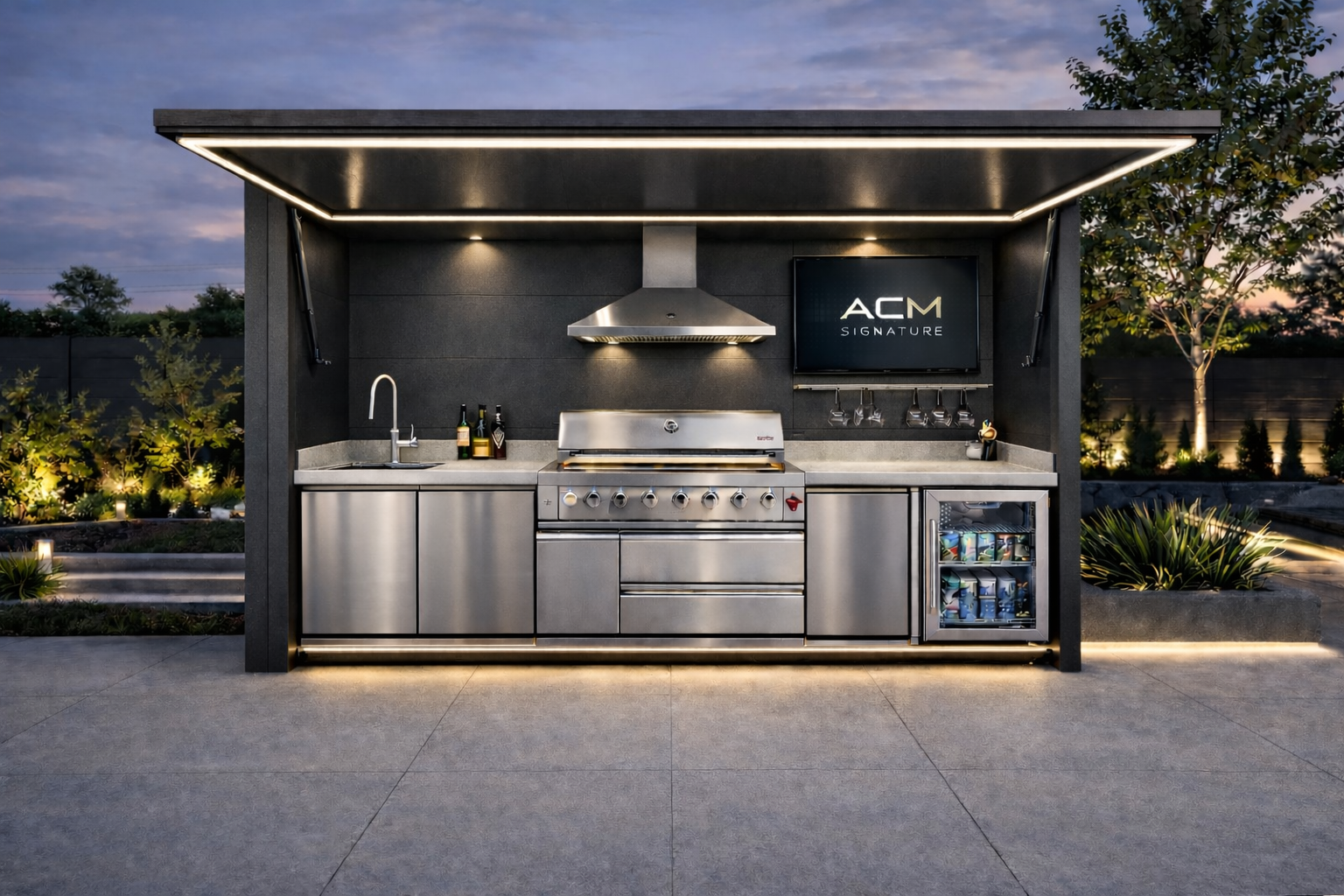 Constructions sur mesure & cuisines extérieures portablesChez ACM Signature, nous ne faisons pas que du revêtement — nous créons des espaces de vie extérieurs uniques.Nosconstructions sur mesure et cuisines extérieures portables sont conçues à partir de panneaux composites en aluminium, offrant un design moderne, une durabilité supérieure et une grande flexibilité d’utilisation. Que ce soit pour une cour arrière, un chalet ou un projet commercial, nos cuisines extérieures allient esthétique et fonctionnalité.Entièrement personnalisables, elles peuvent intégrer : • Plans de travail sur mesure • Éviers et points d’eau • Rangements intégrés • Espaces pour BBQ et électroménagers • Structures modulaires et transportablesLeur conception légère et robuste permet de les déplacer facilement tout en conservant une solidité digne d’une installation permanente.⸻Panneaux pour clôtures, foyers et aménagements extérieursLes panneaux composites en aluminium d’ACM Signature ne se limitent pas aux façades et aux cuisines — ils transforment également vos espaces extérieurs.Nos panneaux peuvent être utilisés pour : • Clôtures modernes et durables • Habillage de foyers extérieurs • Écrans d’intimité et séparateurs de terrasse • Murs décoratifs et éléments architecturauxRésistants aux intempéries, faciles d’entretien et entièrement personnalisables, ils permettent de créer des aménagements extérieurs à la fois esthétiques et fonctionnels. Chaque projet peut être adapté selon le style souhaité : minimaliste, industriel, contemporain ou chaleureux.